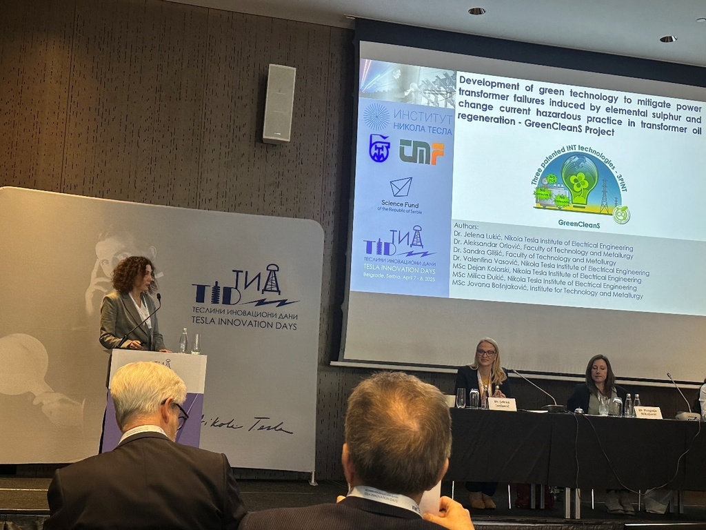 Пројекат GreenCleanS успешно је заокружен на конференцији Теслини Иновациони Дани, одржаној 7-8. априла 2025. у Београду, где су представљени резултати остварени у претходне две године. Излагање руководиоца др Јелене Лукић и проф. др Александра Орловића изазвало је велико интересовање стручне јавности, како домаће, тако и међународне.